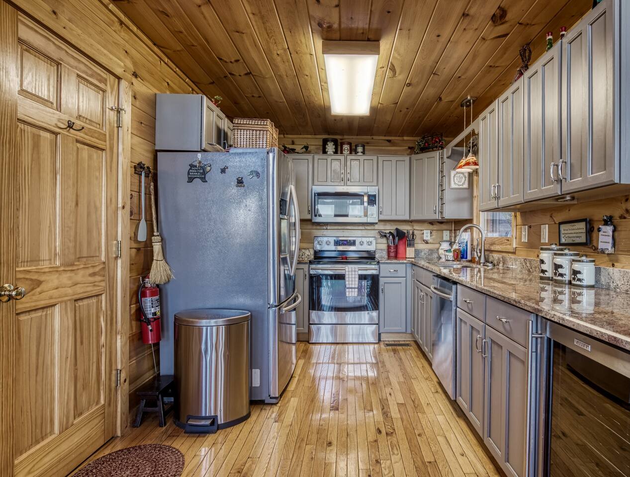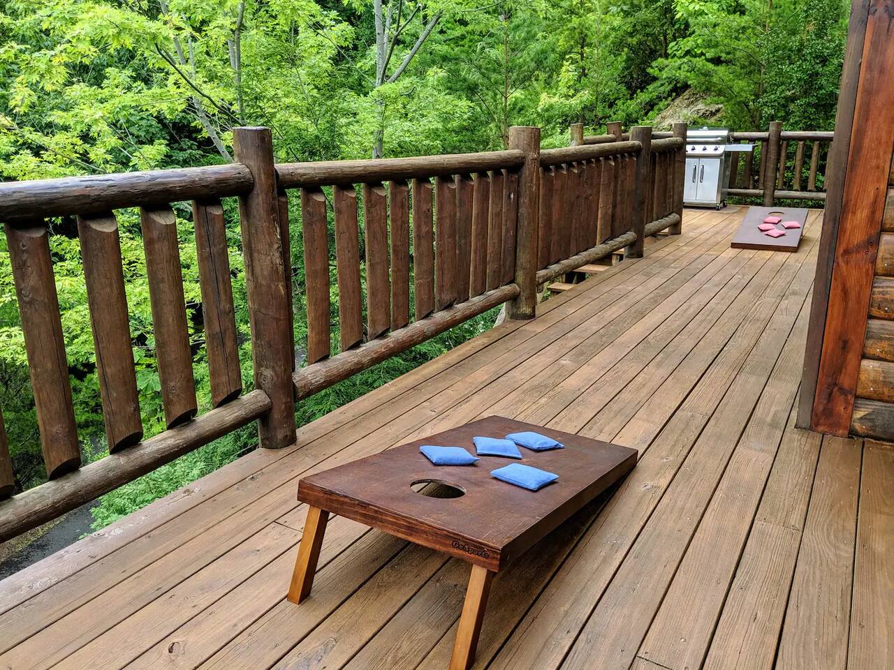 We look forward to hosting you at Secret Ridge; we have strive to provide you a 5-STAR accommodation. The 1st floor entertainment area includes a Queen bed nook and a Queen pullout couch. The 2nd floor has an open concept living/dining/kitchen as well as a Queen Master suite with a private, full bath that includes a Jacuzzi tub. The 3rd floor is a private King Master suite with a private balcony and a full bath. Each room has entertainment galore for your viewing or listening pleasure. You can stream to your heart’s content with fast, unlimited high speed WiFi. We also offer several classic board games, cards and a poker set. You'll enjoy multiple outside areas on two wrap around decks with plentiful seating, a 6 person outdoor dining table, a 6 person hot tub, a screened in porch with a porch swing, a regulation corn hole space and a charcoal grill. Outdoor activities abound in the Smokies. Instead of driving to the park, you can access it right behind the cabin on your private trail leading to the Great Smoky Mountain National Park hiking trails! The possibilities are endless at Secret Ridge: a couples retreat, a girls trip, or a family getaway. Read below for more details about the amenities and rooms on each floor. 1ST FLOOR The first floor is an entertainment and sleeping area. You’ll love the comfortable hang out areas, the queen bed nook, views from the floor to ceiling windows and your own wrap around deck with a seating area. * Private entrance * Wrap around deck with a seating area * Floor to ceiling windows with a wooded, mountain view * Queen Bed Nook * Queen pullout couch * Full bathroom with a shower * Body wash, TRESemme shampoo and conditioner supplied for your convenience * Full size washer and dryer located in the bathroom * Roku TV - bring your own streaming logins * Extensive selection of board games, cards and Poker set * Super comfy, sink into pullout couch for TV watching or playing video games 2ND FLOOR A full wall of windows with spectacular mountain views will welcome you when you enter the 2nd floor. The 2nd floor has a living / dining / kitchen open concept and a queen master suite with a jacuzzi tub! You’ll also access another full wrap around deck from this floor. The deck has three points of entry. You’ll also enjoy custom decorative touches throughout providing a warm, cabin experience. Queen Master Suite * Queen bed with a side table and lamp on each side * Alarm clock * Fire Stick TV - bring your own streaming logins * Full closet with hangers * Luggage rack * Dresser * Overhead ceiling fan with a light * Wood blinds * Full length mirror Queen Master Bath * Attached, private full bathroom with jacuzzi tub and shower * Body wash, TRESemme shampoo and conditioner supplied for your convenience * Towels and washcloths Living Room * Enjoy a 50” 4K, Roku TV - bring your own streaming logins * Blu Ray player and some favorite movies * With the fast, unlimited Wifi you can stream any content you desire by signing into your Netflix, Hulu or Amazon Prime accounts * Perfect spot for relaxation. Couches have 4 built in recliners. * The coffee table lifts up as a built in TV tray. * Relax by the fireplace (not active in warmer months, Apr-Oct) * Overhead ceiling fan with light * Overhead recessed lighting Kitchen * Sink overlooks mountain views and screened in deck area * All stainless steel appliances * French door fridge, dishwasher with dishwasher soap, large oven with electric stove top and full size microwave * Coffee station; High end Breville Keurig with K-cups. Enjoy an early morning sunrise with fresh coffee on the front porch rocking chairs and swing (a family favorite). * Plenty of plates, glasses and utensils for 8 people * Comes completely stocked with cooking needs, including a huge selection of pots, pans, cookie trays, cooking utensils, toaster, crock pot and more * Deluxe knife set * Includes one roll of paper towel, dish soap and dishwasher tablets * Large countertop prep area * Garbage disposal Dining Room * Open concept with the living room and kitchen * Overhead recessed lighting * 6 seat dining table * Mountain views while dining 3RD FLOOR You’ll enjoy a private, king master suite on this floor with an attached full bath and your own private balcony with expansive mountain views. King Master Suite * King bed with a side table and lamp on each side * Vaulted ceilings * Wall of windows leading out to your private balcony with expansive mountain views * Screened-in balcony has seating for two and a table to enjoy your morning coffee or a glass of wine * Balcony also has a ceiling fan, overhead light and two wall sconces * Bench dresser in front of bed * Armoire for clothes hanging * Full closet with hangers * Luggage rack * Desk with chair * Reading chair * Roku enabled TV - bring your own streaming logins. King Master Bath * Vaulted ceilings * Tall windows, for ample natural light * Double sinks * Bath/shower combo with curved shower rod for more space * Handheld shower head * Body wash, shampoo and conditioner dispensers built in for your convenience * Linen dresser OUTDOOR ACTIVITES Hiking and the Great Smoky Mountain National Park * Walk out your back door to a trail leading to the Great Smoky Mountain National Park * We strongly suggest hiking boots and difficulty is medium * If hiking isn’t your thing, you can access the Great Smoky Mountain National Park via the secret entrance, off of Line Springs Rd, only 5 minutes from Secret Ridge * Metcalf Bottoms is only a short 3 minute drive after you enter the park * A picnic basket is provided so you can enjoy a picnic along the river * Metcalf Bottoms has multiple picnic tables and grills for your enjoyment 1st Floor Deck You’ll enjoy the privacy and views of the 1st floor deck and seating area. 2nd Floor Deck There are 3 areas of enjoyment on 2nd floor deck and beautiful mountain views from all areas Front Side of Deck * 6 person hot tub that is drained and cleaned after every sta